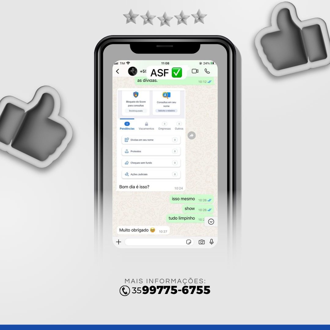 - Não pagamos, nem negociamos as dívidas do cliente, mas sim apenas retiramos judicialmente todos os apontamentos que estiverem ali no aplicativo do SERASA e outros;